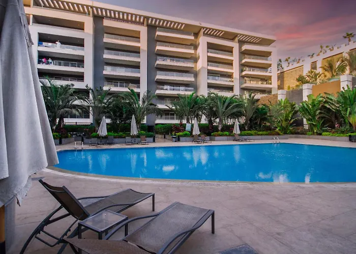 Luxurious Family 5Br Pool View Near Airport! Apartment includes a patio, a balcony, and a sitting area with air conditioning for utmost comfort. The apartment is equipped with a bathroom that features hairdryers, bath sheets, and slippers. You'll also come across a bidet, a walk-in shower, and a separate toilet.